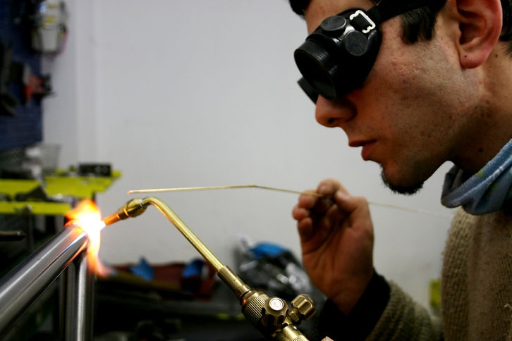 Saldiamo i nostri telai in acciaio mediante cannello ossipropanico e materiale d'apporto in lega di argento che permette di ottenere telai con caratteristiche di resilienza eccezionali.